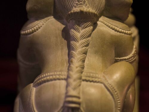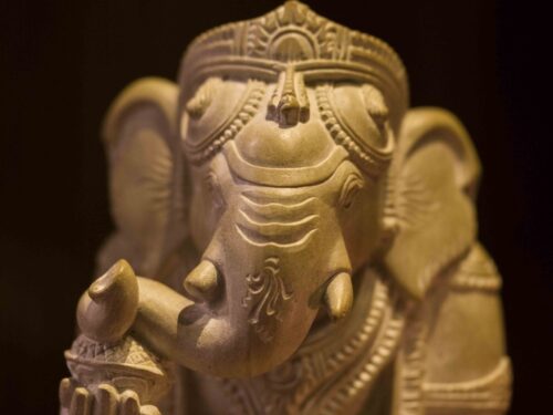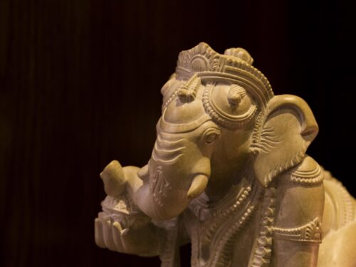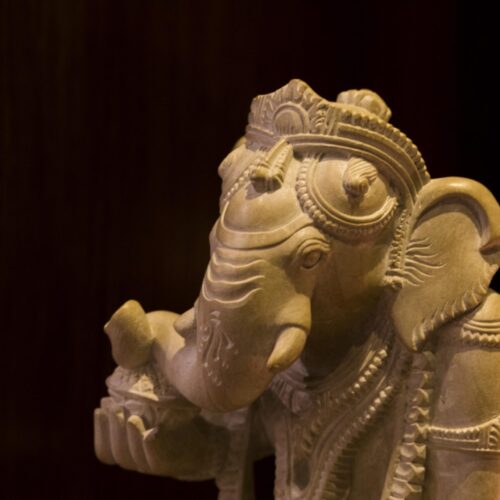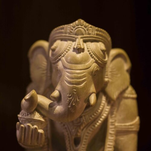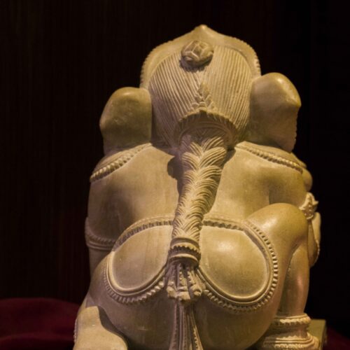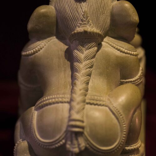 An adorable Bal Ganesha – it is fascinating to see cold stone transform into delicate necklaces that hang from the neck of baby Ganesha. The intricate ornaments, the adorable curl of the trunk, the benevolent face are beautiful but the pièce de résistance is the braided hair at the back, each strand lovingly teased out by deft hands. A labor of love, a treasure and an heirloom.