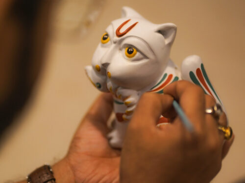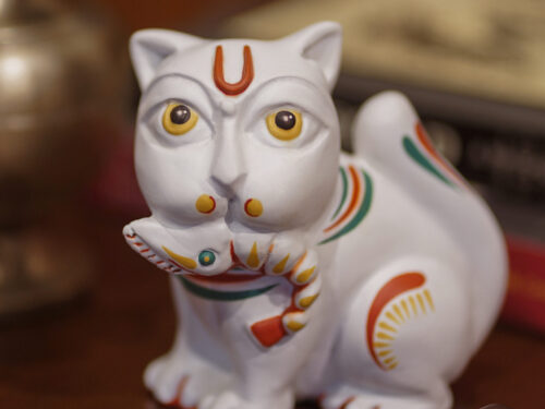 Our interpretation of the Boishnab Bedal or the Ascetic Cat, though more rotund and adorable than the previous icons, takes the same jab at moral duplicity.