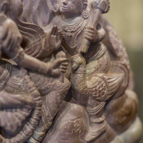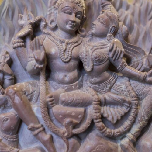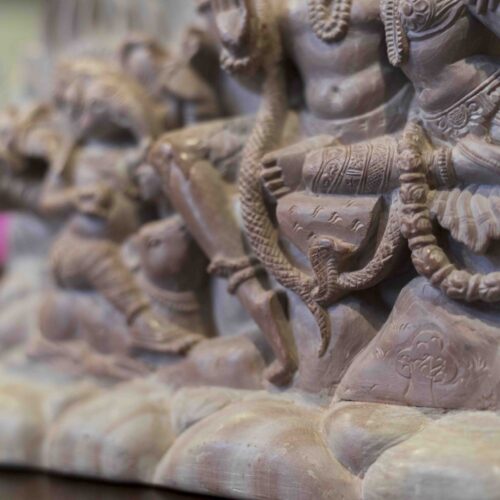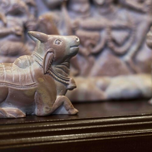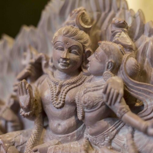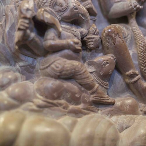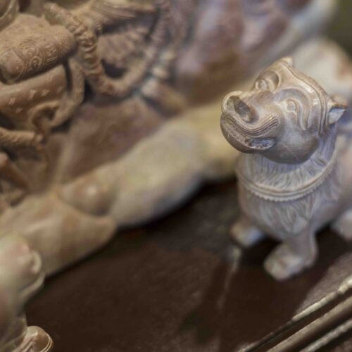 Perhaps true wisdom and happiness lies in accepting and celebrating each other’s differences and circumstances. It is then that Ganesh’s mouse, Shiva’s serpent and Kartika’s peacock prance together as Nandi and the Goddess’s lion look on.