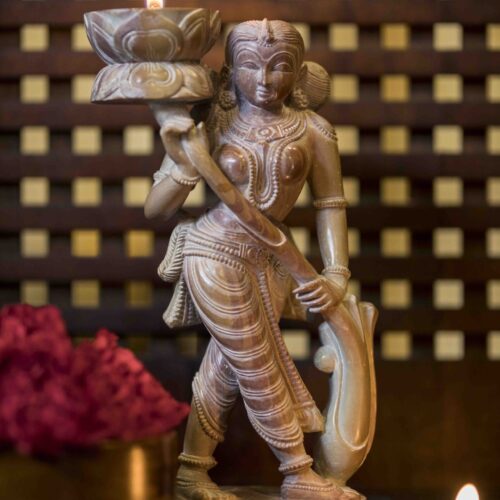 Inspired by the divinity of this tree, our Kalptaru cake stand and fruit holder, hand-carved out of pure Mahogany wood, has been crafted to enhance the charm and splendour of your home and office spaces and to grant you nature’s most beautiful favours and treats.