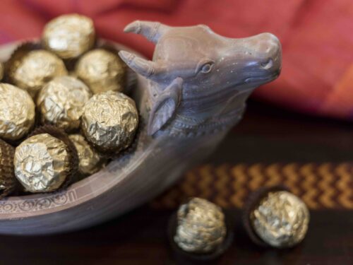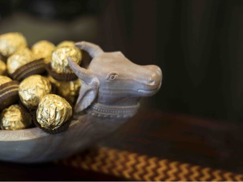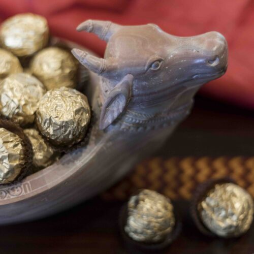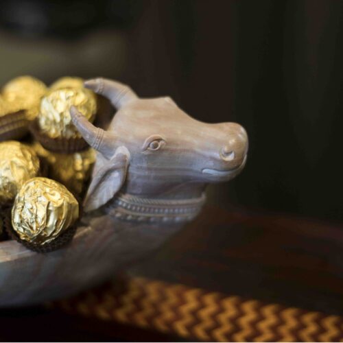 Lovingly carved in soft soapstone, the Kamadhenu bowl draws on the metaphor of its namesake – the mythical cow that can fulfil any number of wishes.