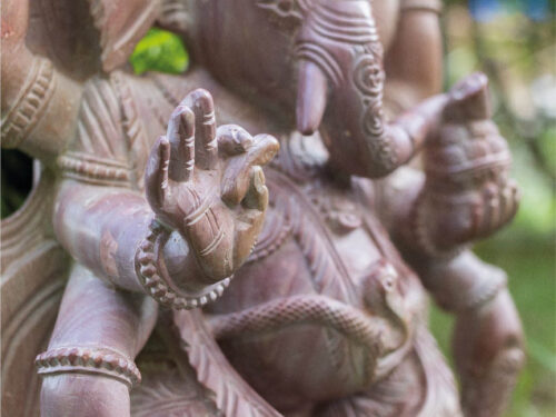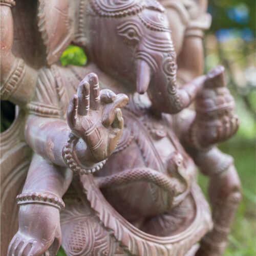 “No. I tried capturing my son in the image. He loves to eat and is devoted to his mother. Now I am worried that I have not put little baskets of fruit at the idol’s feet” says our master craftsman as he goes back to carving his little stone basket.