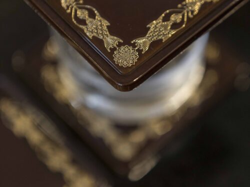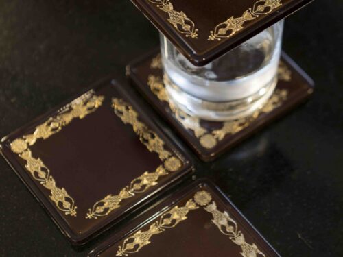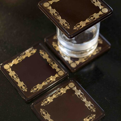 Inspired by the intricate alpanas (ritual rice diagrams) of Bengal, the matsya coasters echo the beauty of Eastern India’s lotus pools nestled in sacred groves.